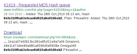 When a hash is unsalted, it can be easily cracked using a search engine like google. For that, just search for the hash and you will see a lot of websites with the cleartext version of your password: